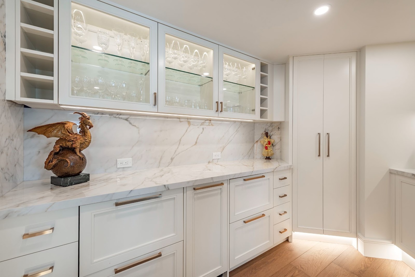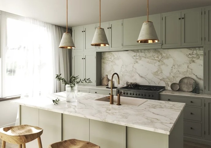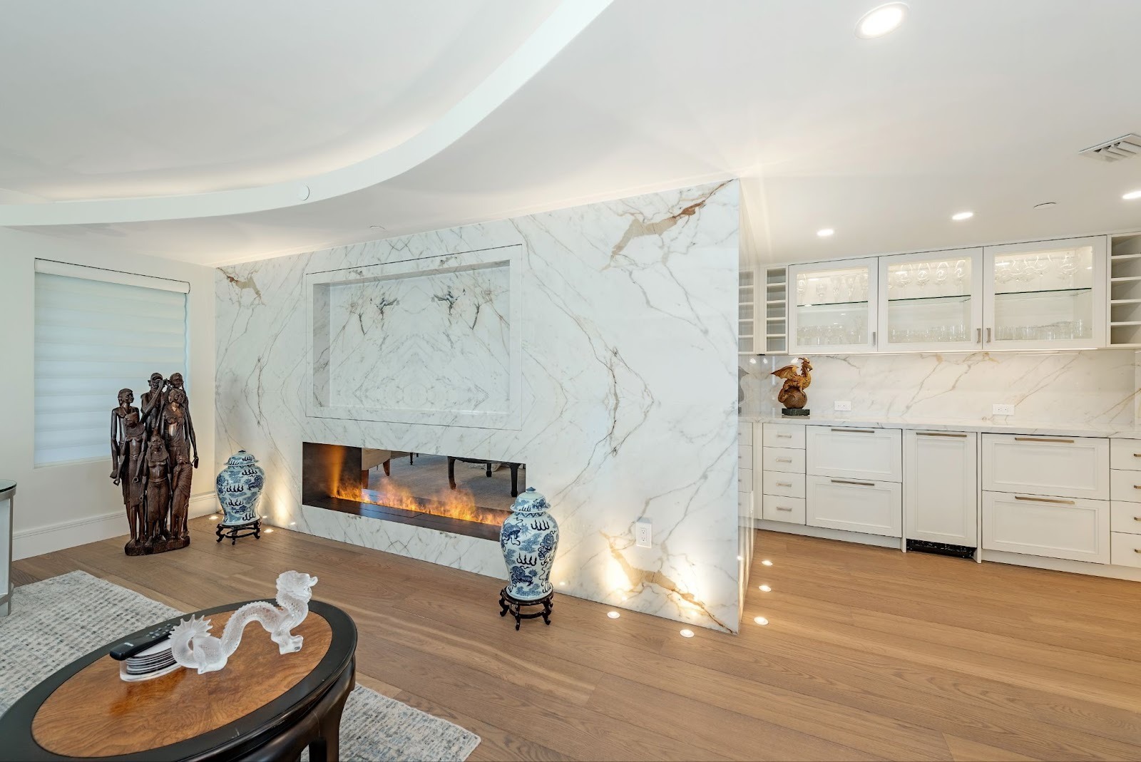 Marble, particularly Calacatta and Carrara, brings unmatched elegance with its soft veining and luminous surface. While it requires more care, many clients embrace its timeless charm. For those who want the look without the maintenance, marble-look quartz provides an ideal compromise